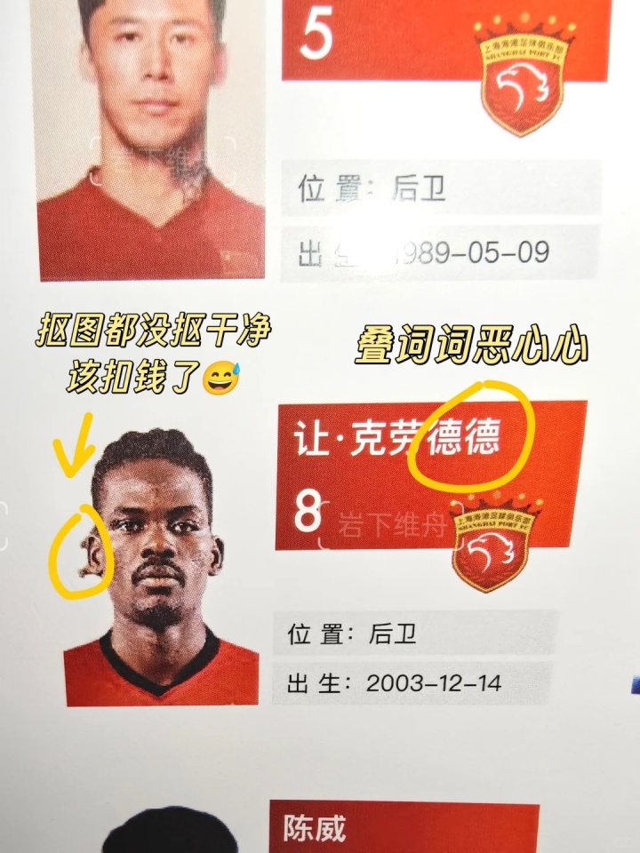 03月02日讯 博主“岩下维舟”在社媒晒出了昨天国安对阵海港的超级杯的手册,其中,球员名单部分漏洞百出,多名球员的照片均为儿童时期的照片或身份证照,国安的队徽印反,还有的球员名字多出一个字。
